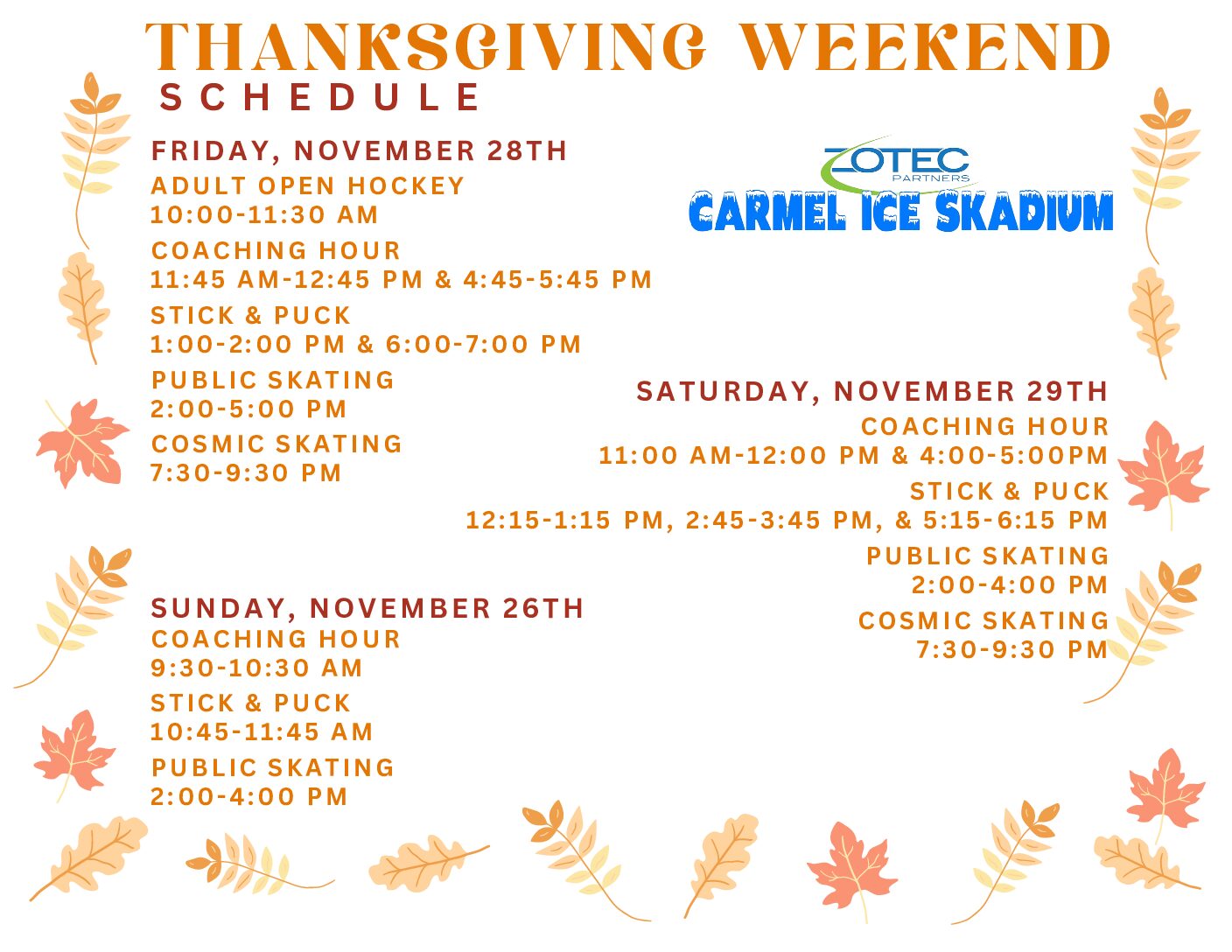 Welcome! The Zotec Partners Carmel Ice Skadium has been serving generations of Indianapolis figure and recreational skaters, and our city’s hockey community for over 40 years! The Ice Skadium is home to two, NHL-sized rinks, along with a fully-stocked snack bar, party rooms, and a pro shop.
